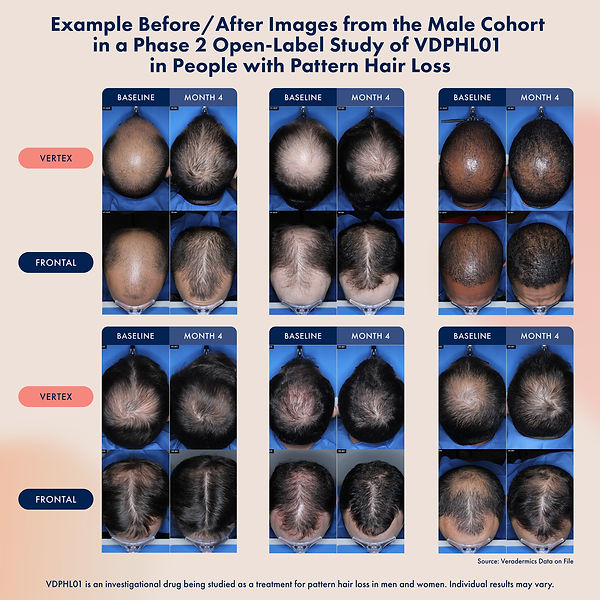 Veradermics has initiated three multicenter, randomized Phase 3 clinical trials of VDPHL01 in males (NCT06724614, NCT06972264) and females (NCT07146022) with pattern hair loss. For more information about enrollment, please visit www.phlstudy.com or www.phlstudy.com/female.